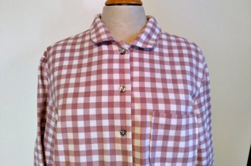 J’ai réalisé Mathilda, la poupée brune, des sous-vêtements, une robe de nuit, une robe avec son tablier et un ensemble jupe/chemisier. Le plus difficile était la réalisation des cheveux, qui ont tendance à s’écarter et à laisser apparaître le crâne blanc