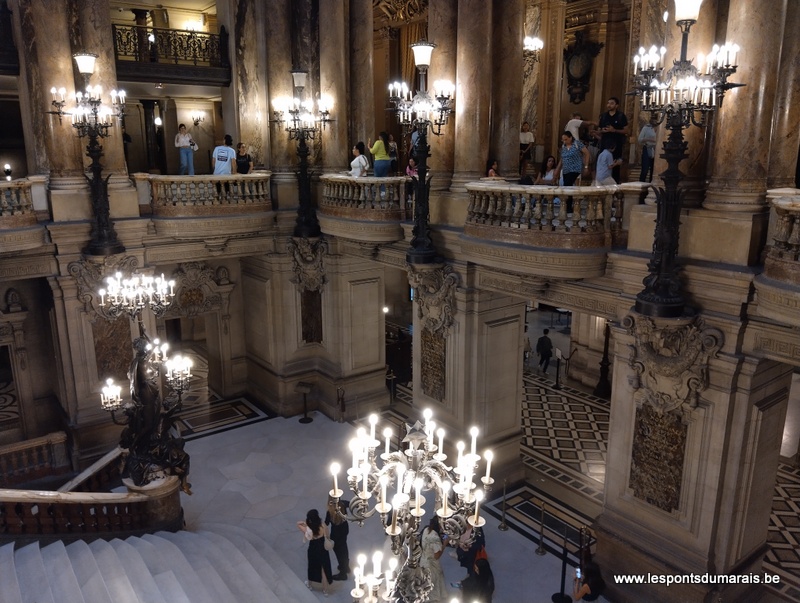 En sortant, il pleuvait toujours et nous avons complètement changé d’ambiance en allant visiter le Palais Garnier. Là, c’est le faste, les dorures et on imagine aisément les dames et messieurs en tenue de soirée en train de monter les marches pour voir le spectacle mais aussi être vus. Et on ne fait pas que l’imaginer, car certaines, pour alimenter leur instagram, n’hésitent pas à revêtir une tenue aussi légère qu’inadaptée à une visite de Paris (un jour de pluie) pour prendre moultes photos et bloquer le passage. En slalomant entre les instagrammeuses, nous avons pris la tablette et visité l’opéra avec Zoé, une jeune ballerine, ce qui a rendu la visite interactive, amusante et très intéressante (même pour les adultes). Grâce à elle, nous avons rapidement pu prendre la tangente et quitter la foule de l’escalier central.
